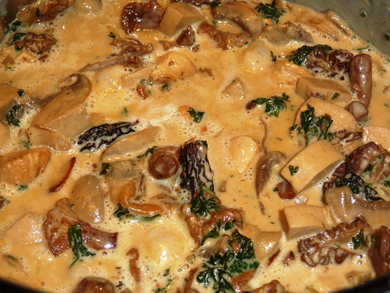 9) Ajouter le jus des morilles, laisser cuire sur feu moyen-doux environ 20 minutes.