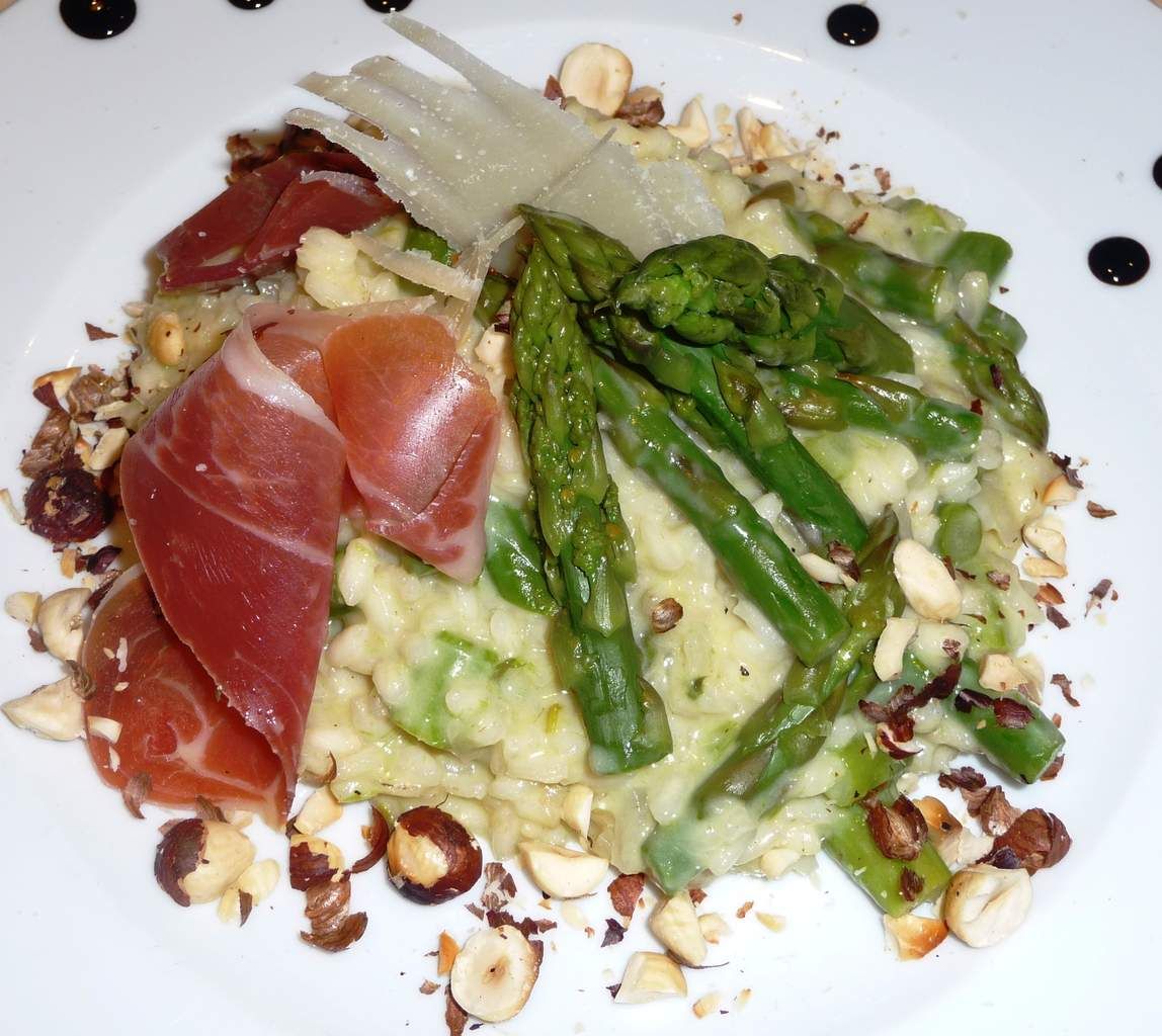Ce qui fait que ce risotto a un VRAI goût d'asperges! Le jambon cru se marie bien entendu parfaitement avec les asperges et les noisettes ajoutent du croquant et un petit goût extra à la recette.