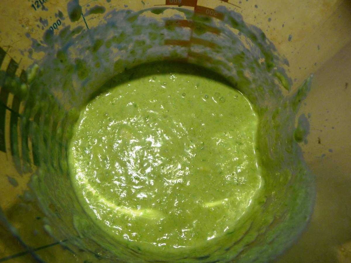 4) Dans le récipient haut avec les queues d'asperges, mettre le mascarpone et mixer avec un plongeur. Réserver