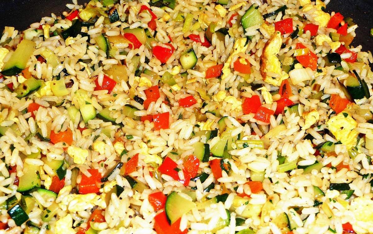 Les connaisseurs diront que ce riz ressemble à du riz...cantonais. Et ils auront raison. J'ai improvisé ce petit riz sauté l'autre soir pour accompagner mes Magrets de canard aux échalotes, miel et vinaigre balsamique. C'était délicieux. J'ai pris les légumes qui me restaient dans mon réfrigérateur. Libre à vous d'en faire autant, le choix est grand!