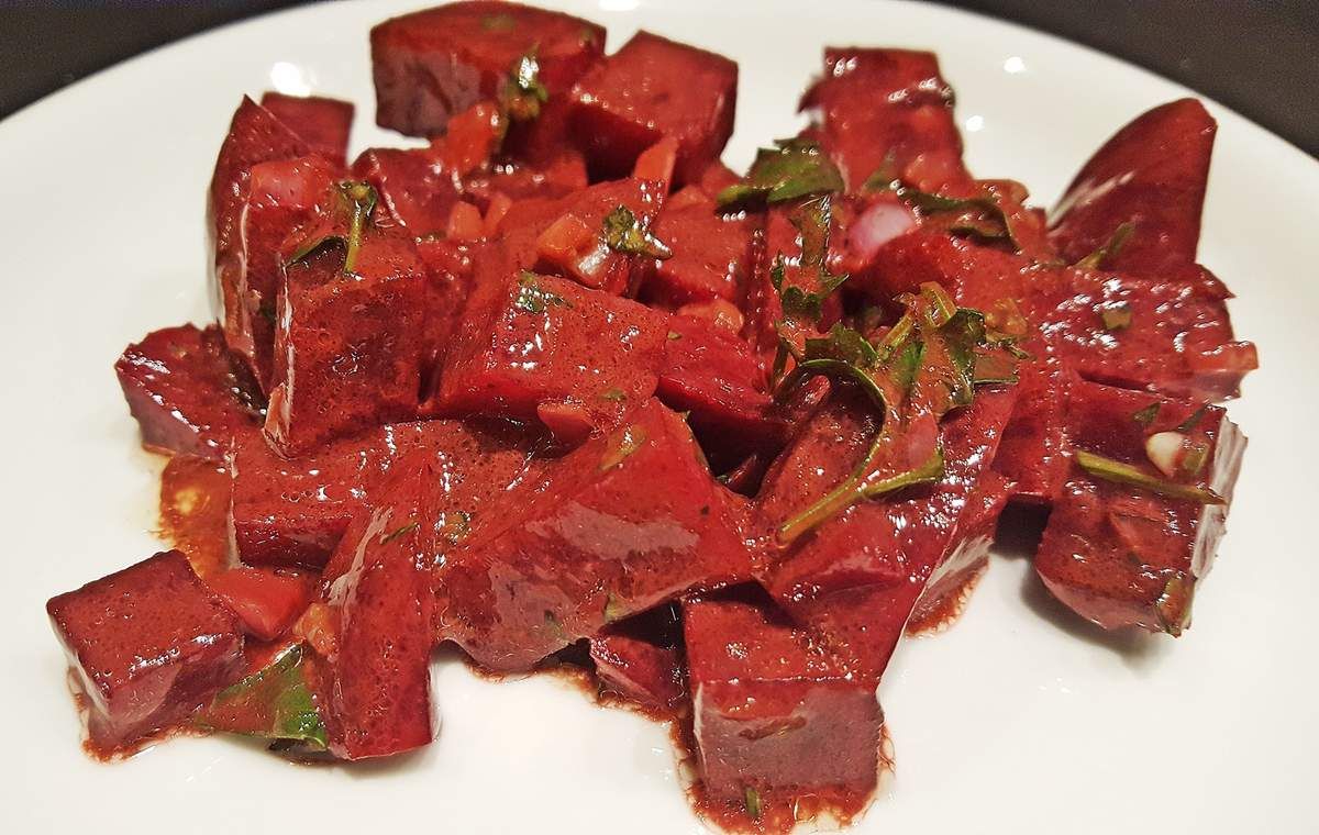 4) Avant de servir, ajouter la sauce à la betterave et mélanger.