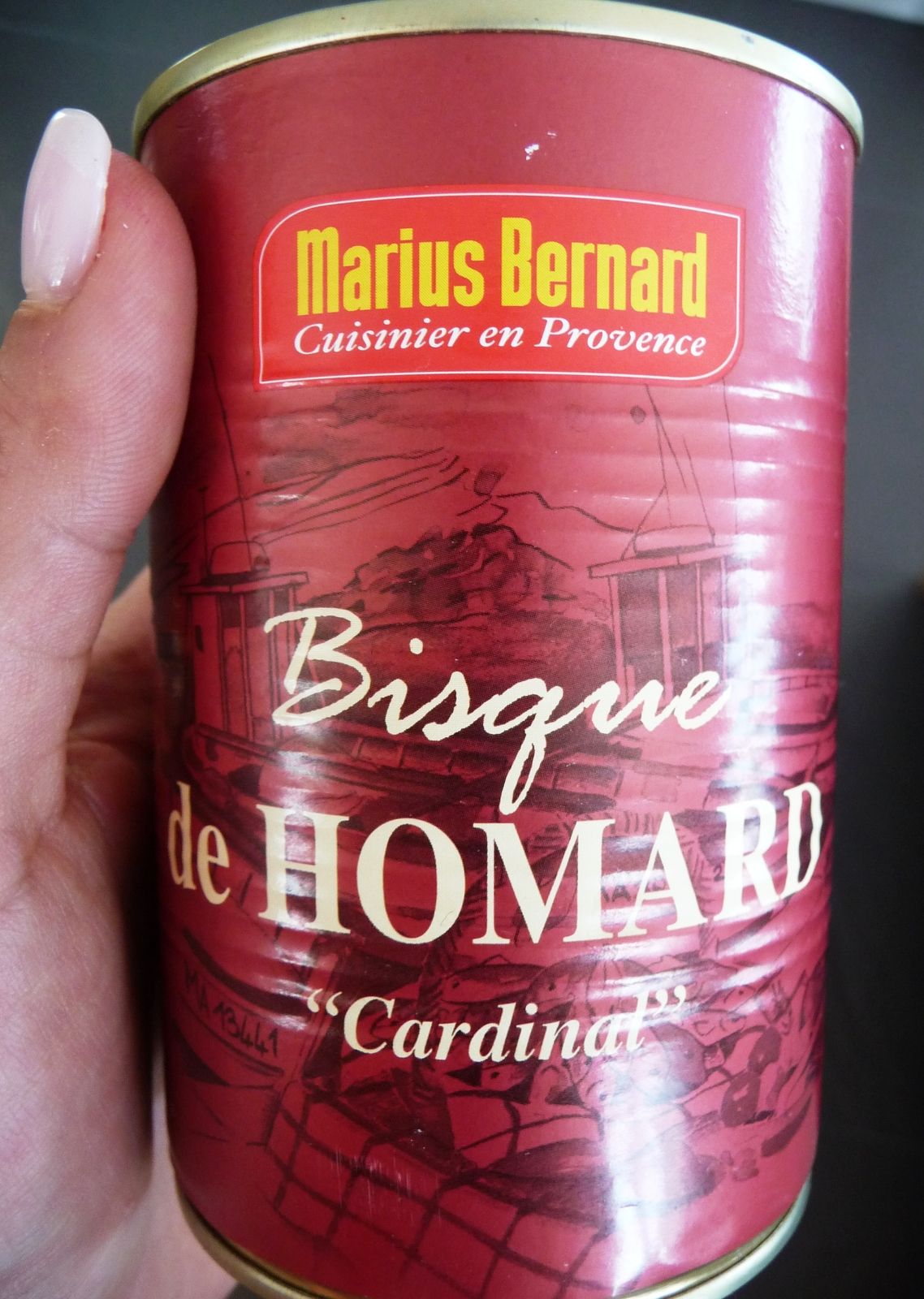 4) Ajouter la bisque de homard. Faites attention à acheter de la bisque de qualité qui contient bien du homard (lisez la composition). Je vous montre celle que j'ai achetée en grande surface (COOP).