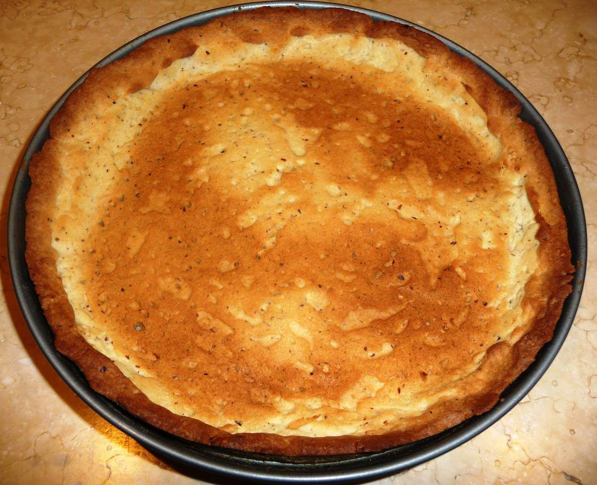 Beurrer et fariner la plaque à gâteau, étaler votre pâte. Découper un disque de papier d'alu ou de papier sulfurisé sur le fond et déposer des fruits secs (noisettes par exemple), haricots blancs secs ou des billes de céramique. Faire cuire dans le four préchauffé à 200°C 10 à 15 minutes. Retirer le papier et les fruits secs et cuire encore 10 minutes jusqu'à ce que le fond soit doré, laisser refroidir.