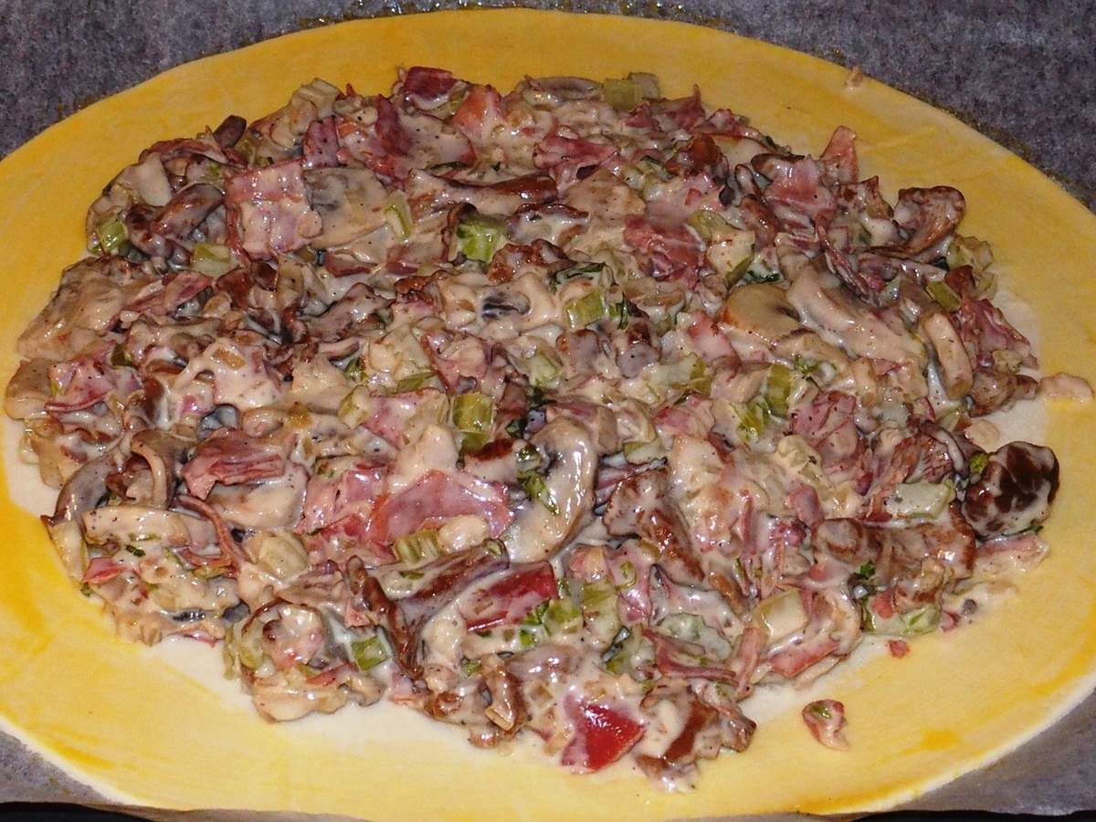 Je viens de rééditer cette recette que j'avais mise il y a longtemps sur mon blog. Une tourte onctueuse et goûteuse! Une de mes meilleures! Une texture fondante par sa béchamel et croquante grâce au céleri. Le jambon cru lui donne du caractère et se marie à la perfection avec les champignons.